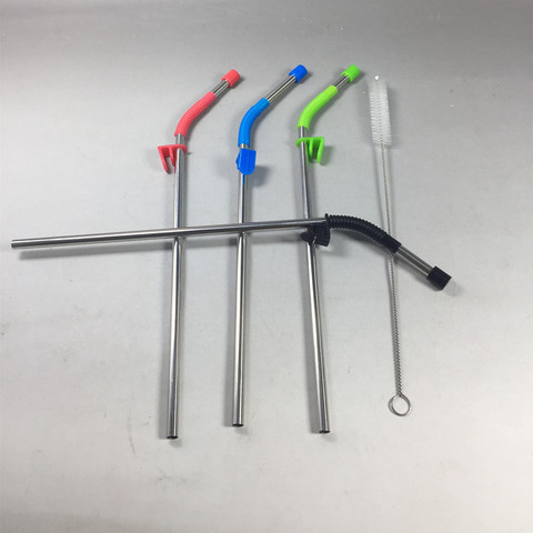 Экологичные соломинки из нержавеющей стали со съемным силиконовым гибким наконечником для бара